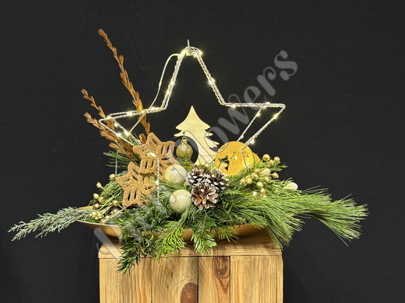 1 tafelstuk met 3D lichtjes ster. ( keuze ter plaatse uit verschillend schalen, rond of langwerpig)